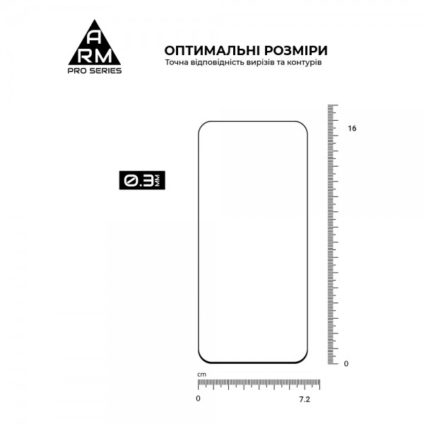 Защитное стекло Armorstandart Pro Series имеет оптимальные габариты и толщину в 0,3 мм. Предусмотрены вырезы под все датчики, камеры и разъемы.