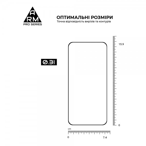 Защитное стекло Armorstandart Pro Series имеет оптимальные габариты и толщину в 0,3 мм. Предусмотрены вырезы под все датчики, камеры и разъемы.