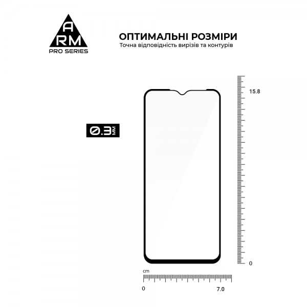 Защитное стекло Armorstandart Pro Series имеет оптимальные габариты и толщину в 0,3 мм. Предусмотрены вырезы под все датчики, камеры и разъемы.