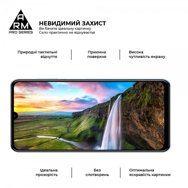 Защитное стекло Armorstandart Pro Series имеет оптимальные габариты и толщину в 0,3 мм. Предусмотрены вырезы под все датчики, камеры и разъемы.
