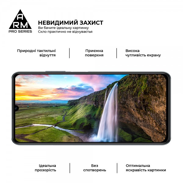 Защитное стекло Armorstandart Pro Series имеет оптимальные габариты и толщину в 0,3 мм. Предусмотрены вырезы под все датчики, камеры и разъемы.